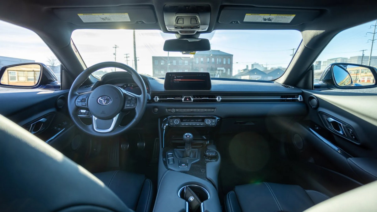 سوپرا 2023 از نظر فناوریهای کمکی رانندگی چندان مجهز نیست. امکاناتی مانند کروز کنترل تطبیقی، هشدار بین خطوط یا سیستم حفظ مسیر در نسخه دستی وجود ندارند، اما تویوتا عمداً چنین تصمیمی گرفته تا تمرکز کامل راننده روی رانندگی باقی بماند.